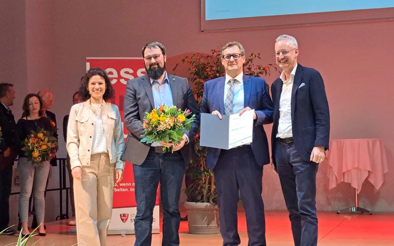 Als eines der ersten teilnehmeden Unternehmen, wurde der ODAV AG im Rahmen des Treffens des Straubinger Wirtschaftsnetzwerks am 12. März 2025 die Auszeichnung zum "ÖKOPROFIT-Betrieb 2025" feierlich von Oberbürgermeister Markus Pannermayr zusammen mit Leiterin des Amts für Wirtschaftsförderung Straubing Daniela Bachmeier überreicht.