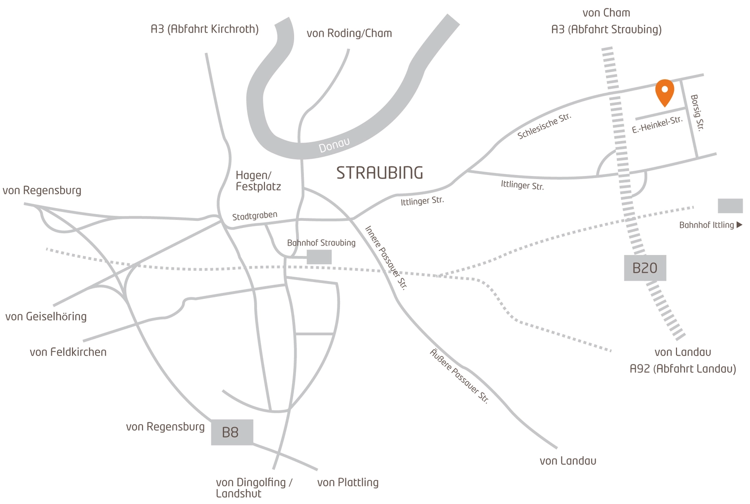 Eine Bushaltestelle des Straubinger Nahverkehrs befindet sich in unmittelbarer Nähe zum ODAV Lehrinstitut. Die Buslinien 1 und 2 fahren beide die Umsteigestelle "Borsigstraße" an.